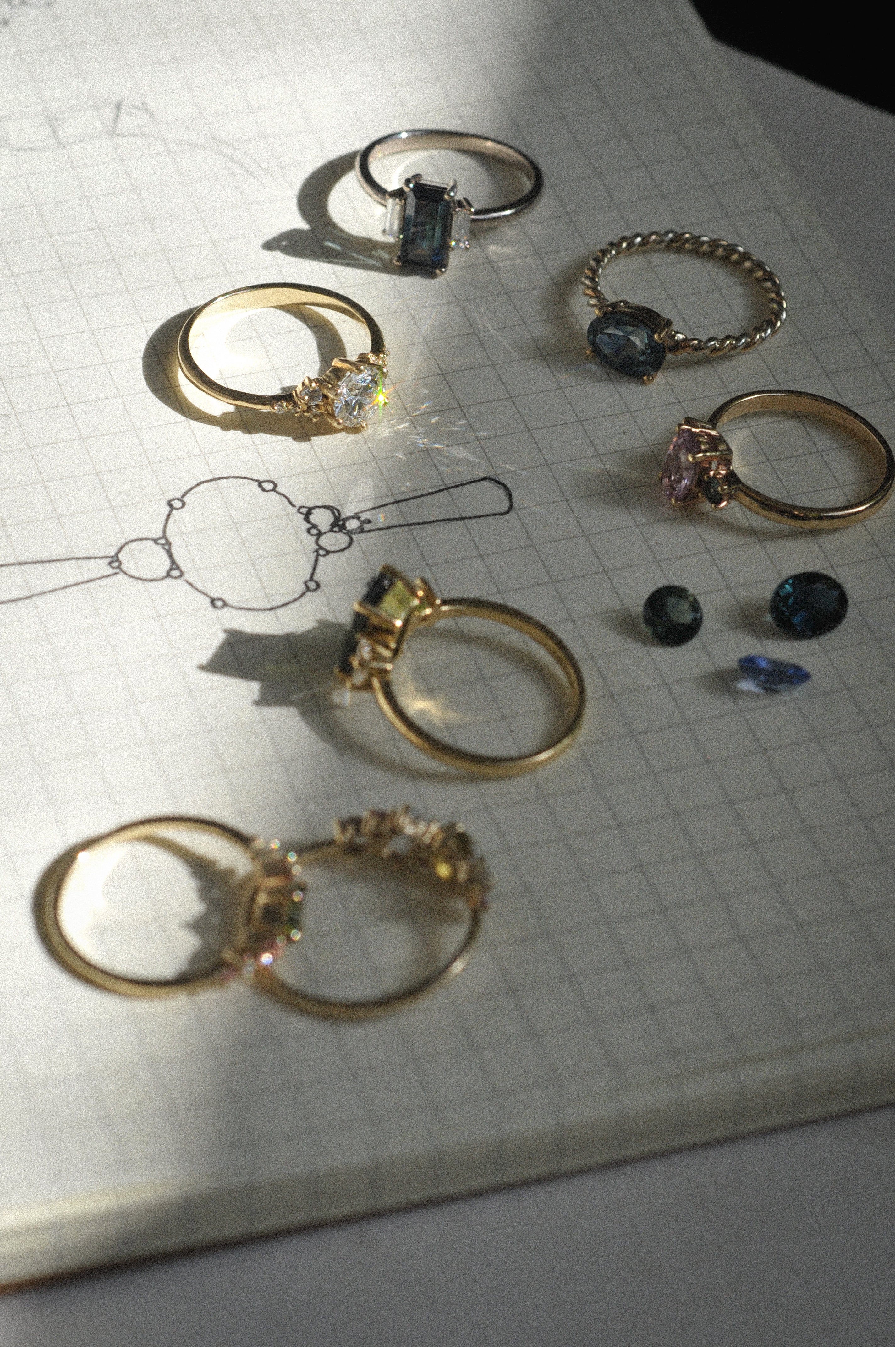 Each piece is designed by our founder, Emma, and our team of talented goldsmiths. If it's a bespoke piece, you're also involved at this stage.