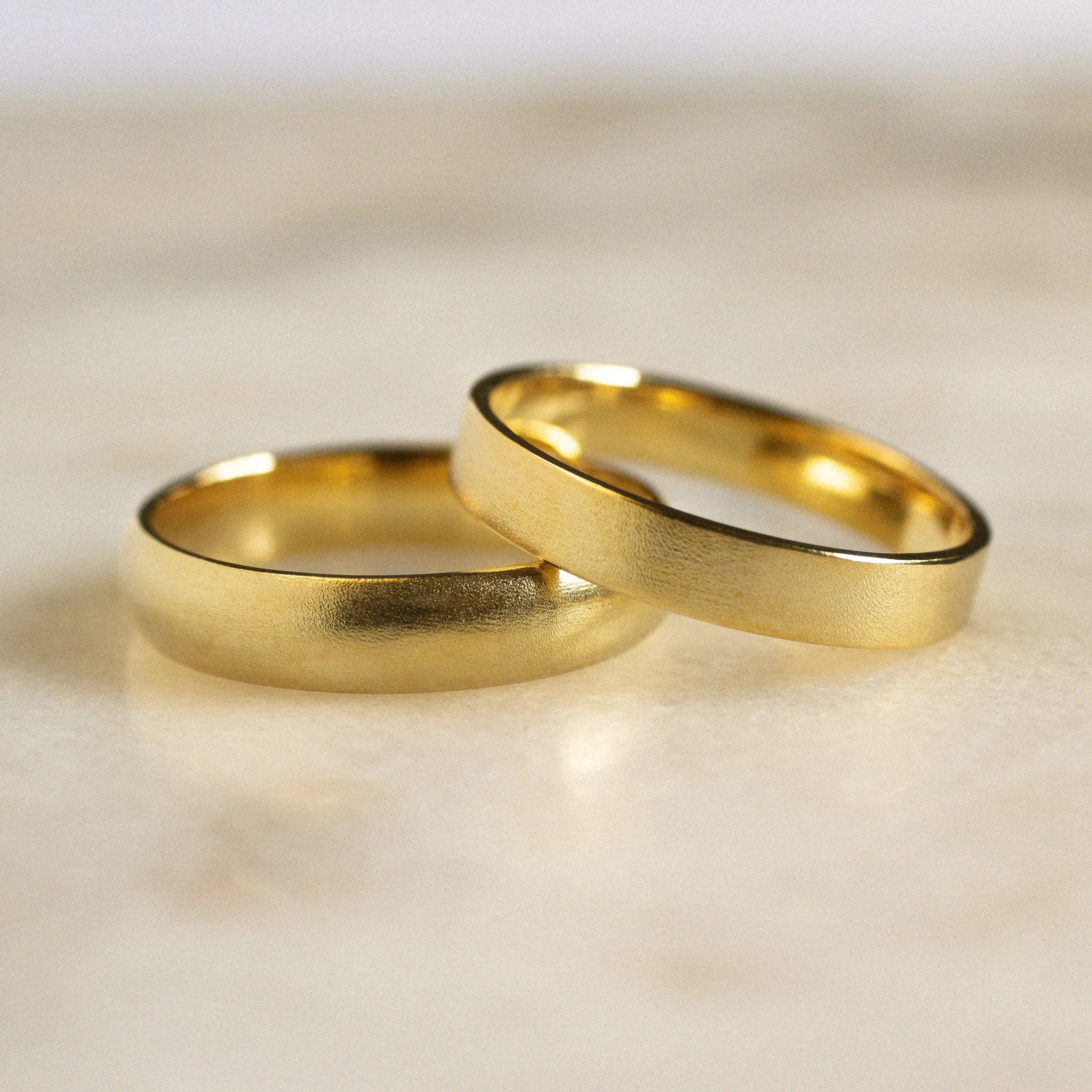 Our wedding rings are now organised by finish, all carefully textured by hand in our London workshop. From high polish, soft satin, or a unique hammered finish, the texture defines how your ring catches the light and where its character lives.