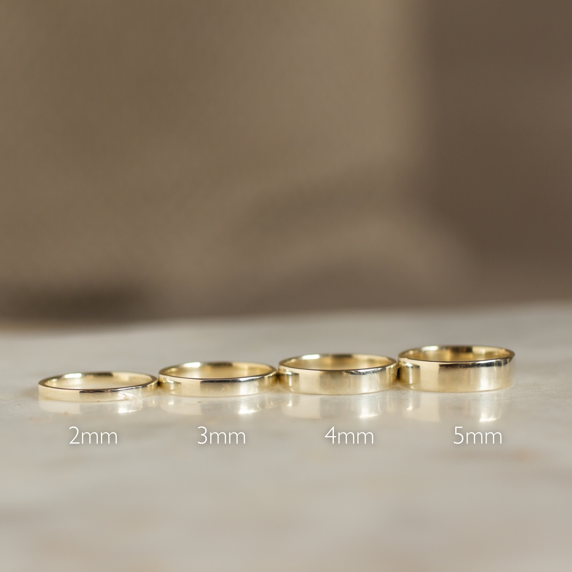 A D Shape wedding ring is one with rounded edges, while a Flat wedding ring has square edges.