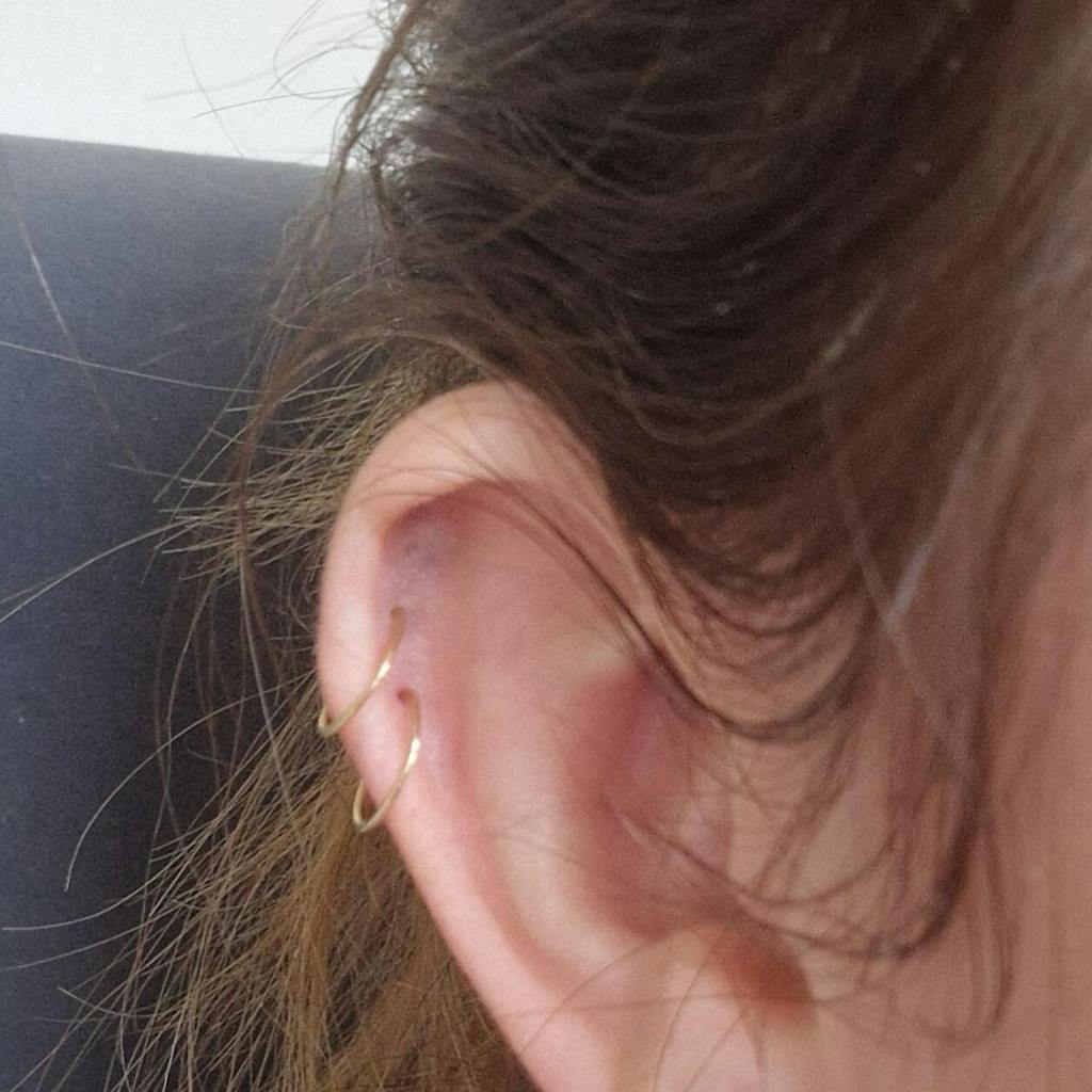 Beautiful, discreet piece of jewellery. I was able to insert it myself and align the ends together; far easier than a post and backing helix earring. No problem with hair-washing, sleeping, wearing earmuffs.