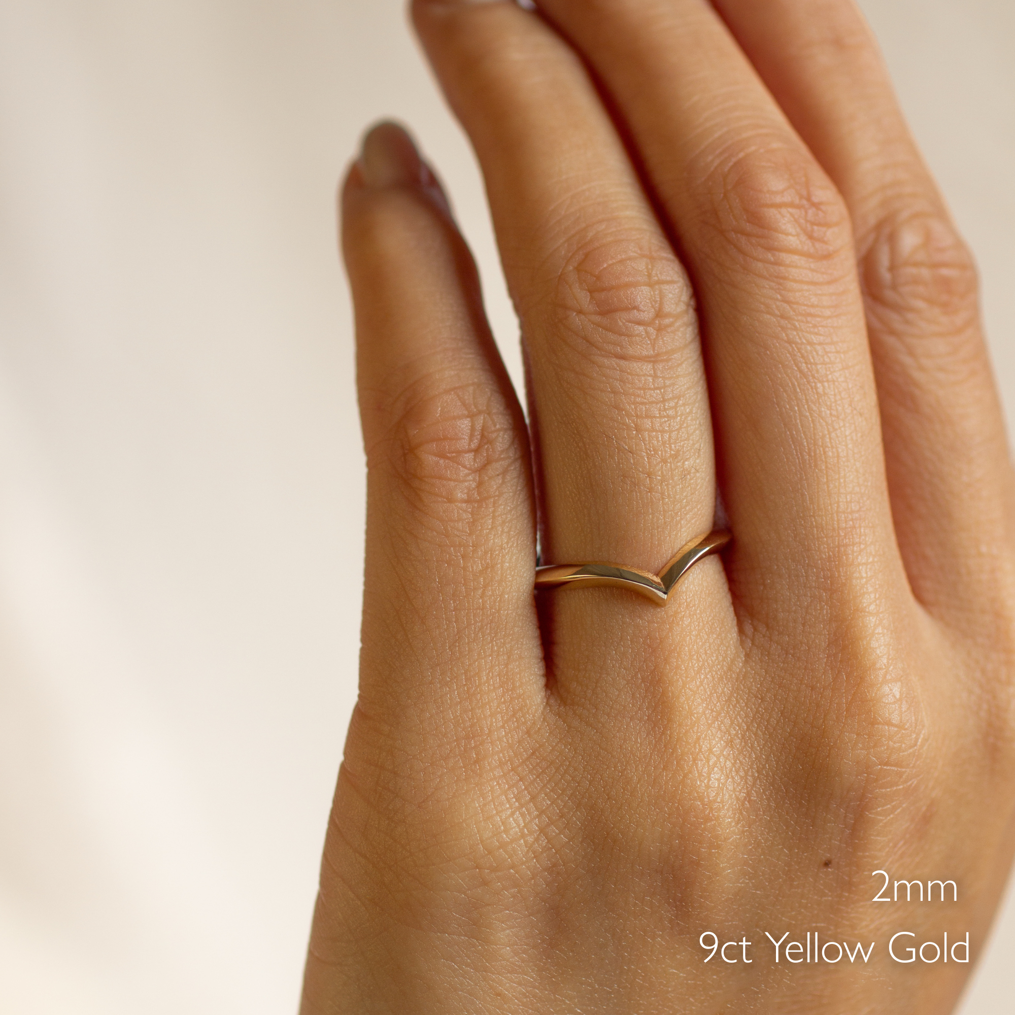 Designed in a sleek pointed shape, discover our Chevron Wedding Ring with knife-edge finish.