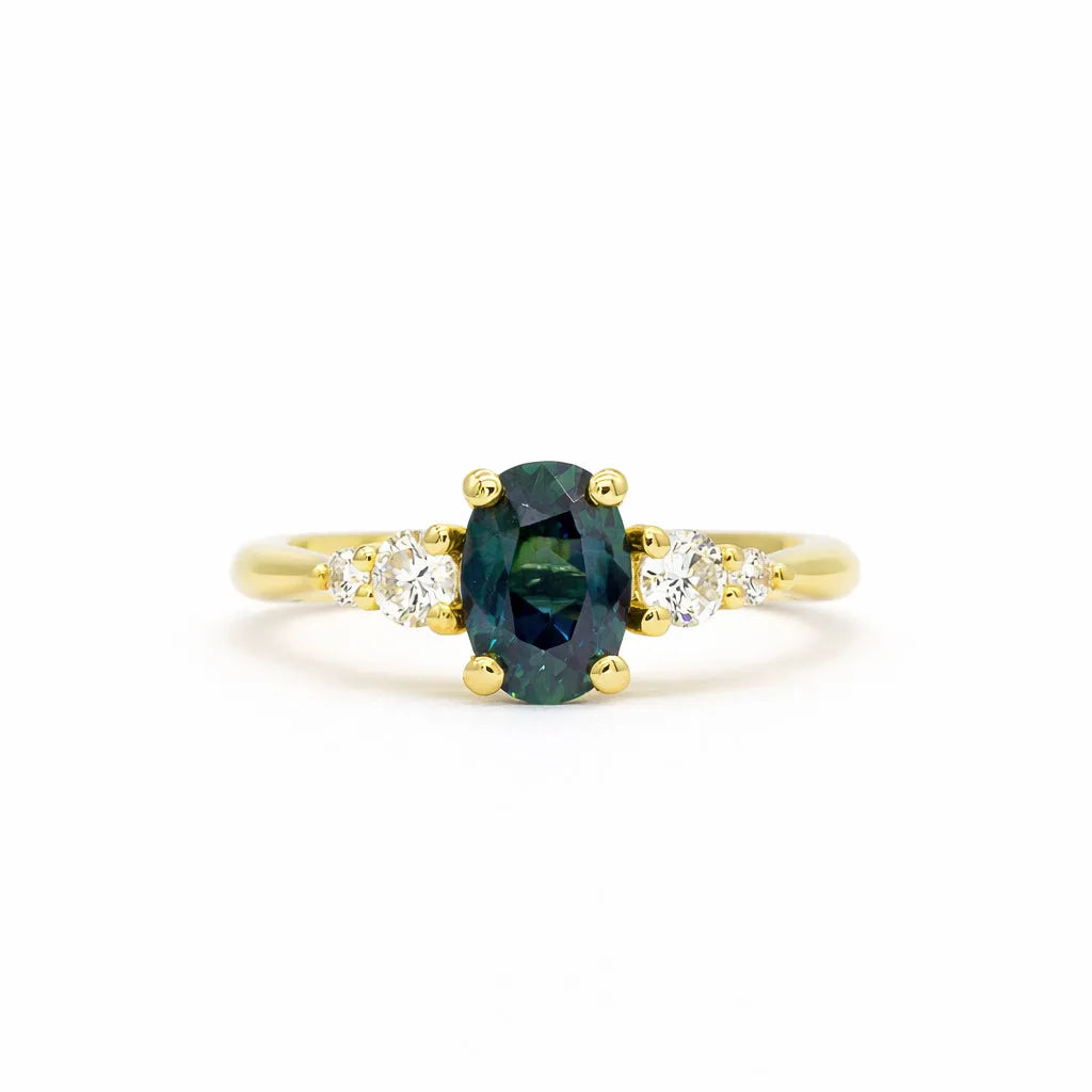 Our 5 Stone Green Sapphire Engagement Ring is ethically made by our team in London.